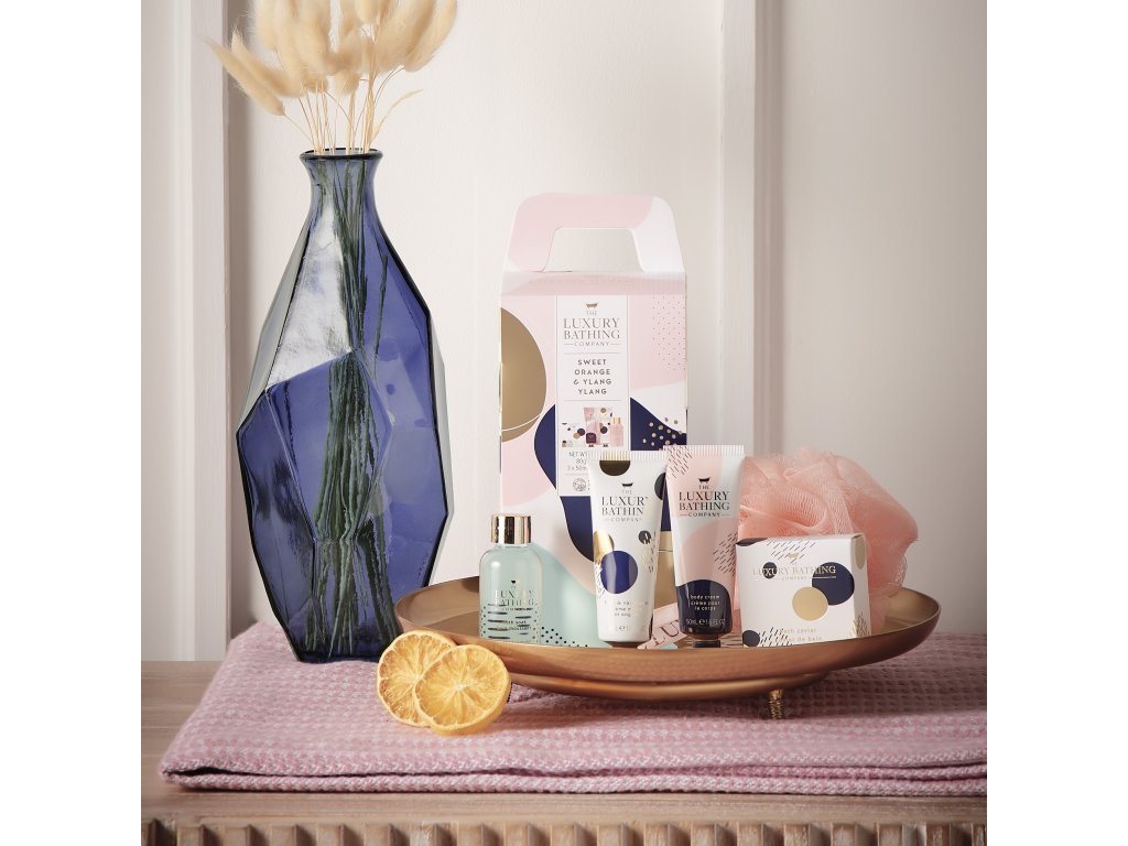 Zabalené a připravené k použití – krásná sada v dárkové krabičce obsahuje všechny koupelové a tělové produkty potřebné pro dokonalý večer.