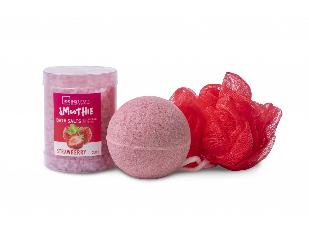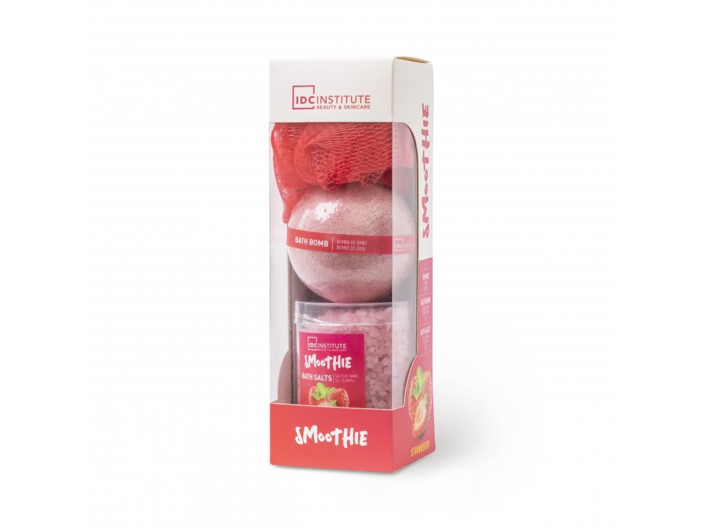 Dárkový set Smoothie Bath Set od IDC Institute obsahuje 3 zklidňující a hydratující produkty pro péči o tělo s lahodnou vůní jahod.