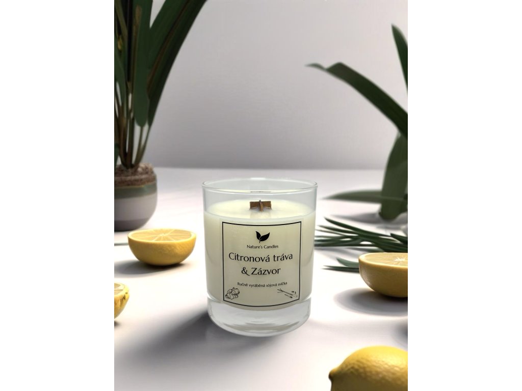 Sójová svíčka NATURE CANDLES Citrónová tráva a zázvor 180 gr