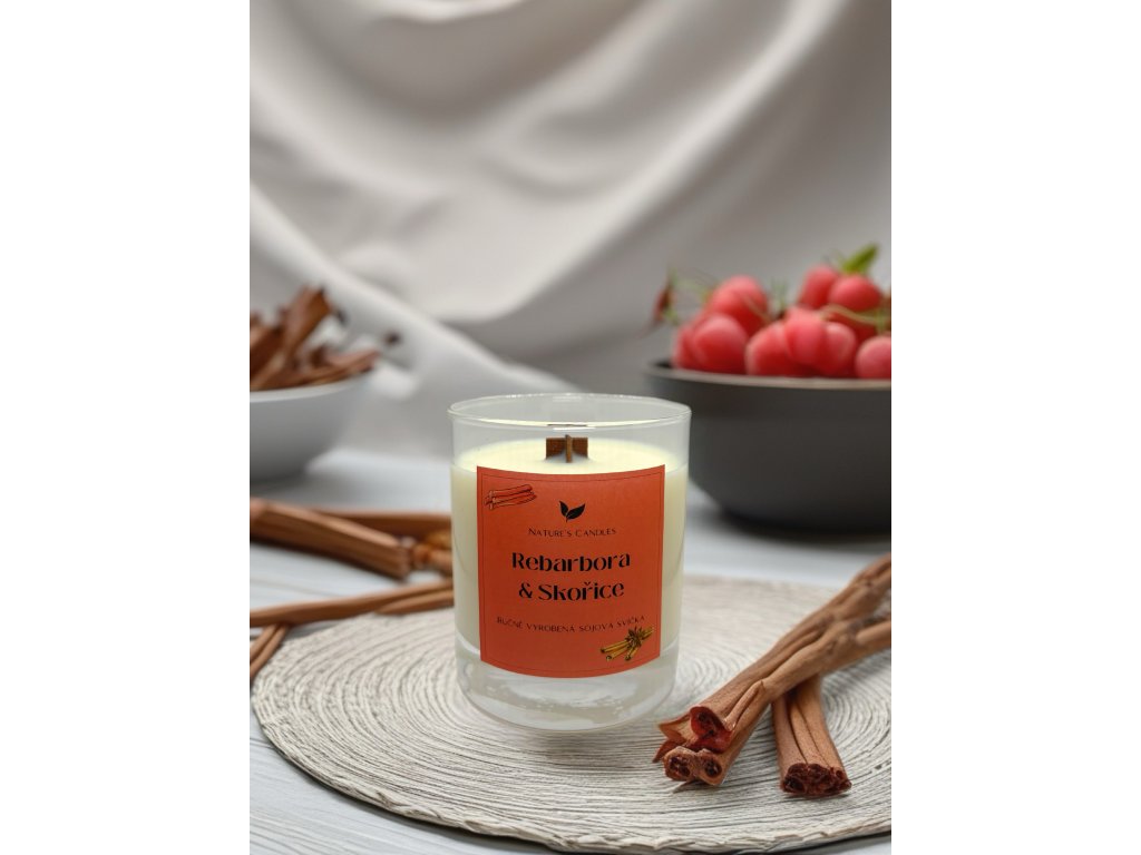 Sójová svíčka NATURE CANDLES Rebarbora a skořice 180 gr