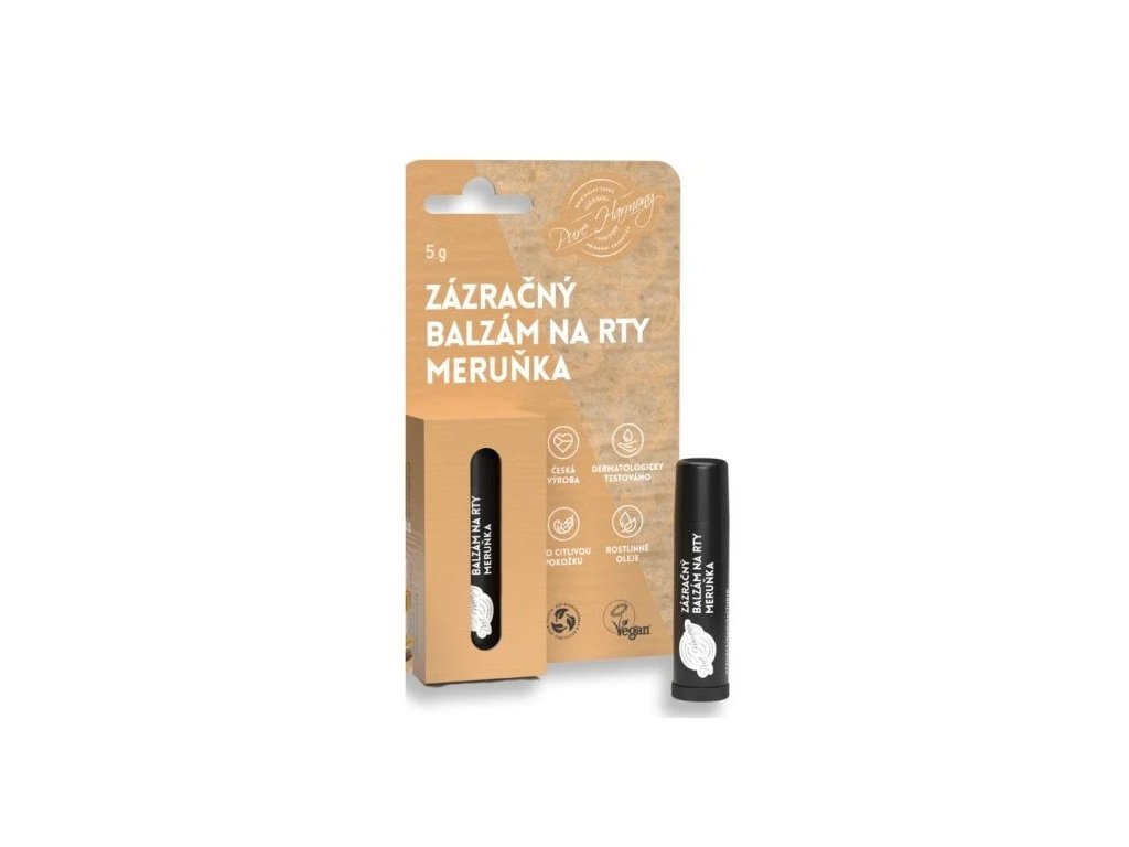 Zázračný balzám na rty Meruňka zhydratuje, zvlační a vyživí vaše rty díky vysokému obsahu meruňkového a mandlového oleje. Bambucké máslo zklidňuje suchou pokožku rtů. Včelí vosk vytváří ochrannou bariéru na povrchu vašeho rtu, která chrání před vnějšími vlivy. Aroma balzámu bylo vyrobeno z rostlinných a ovocných extraktů v bio kvalitě. Dermatologicky testováno i pro citlivou pokožku.